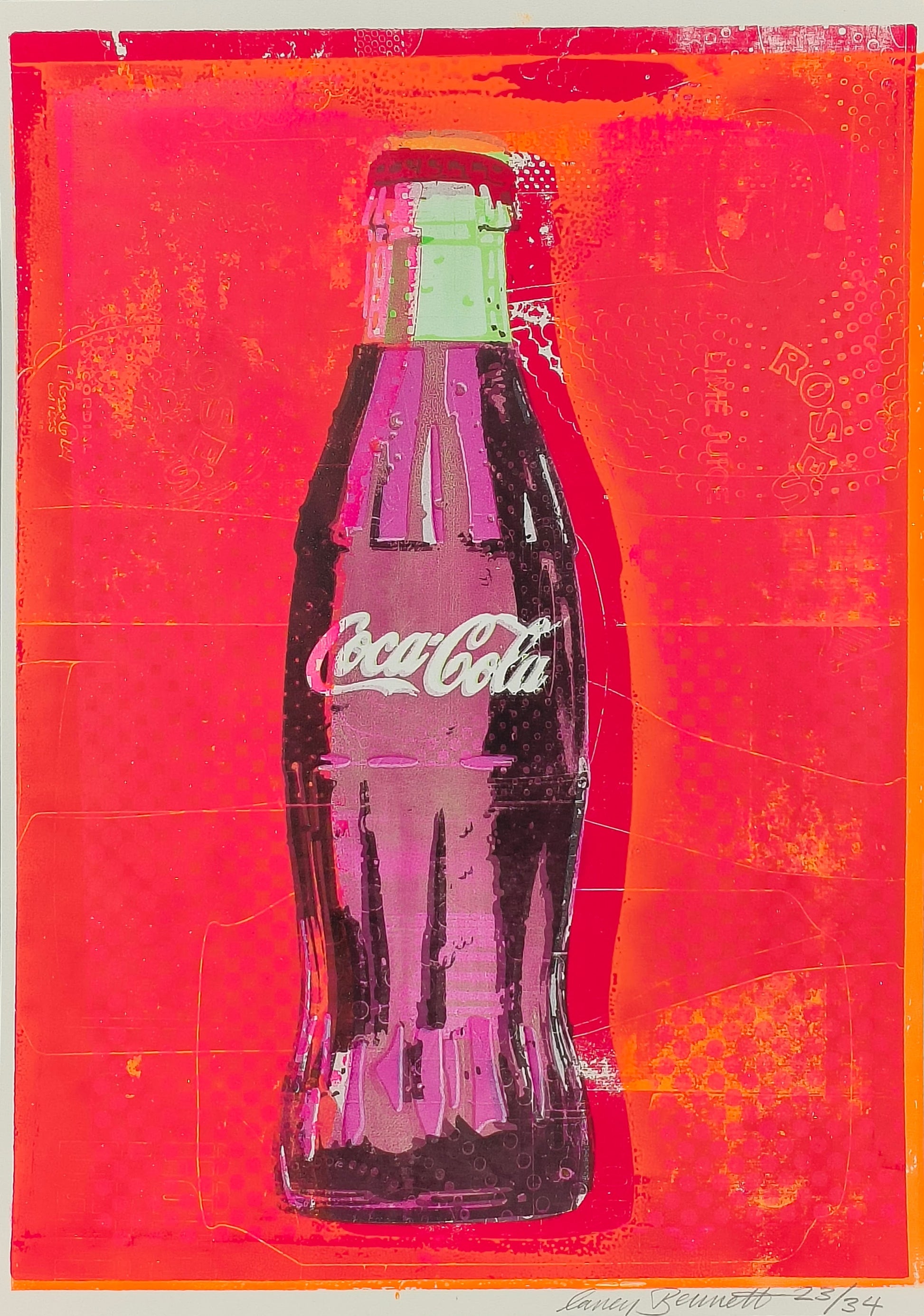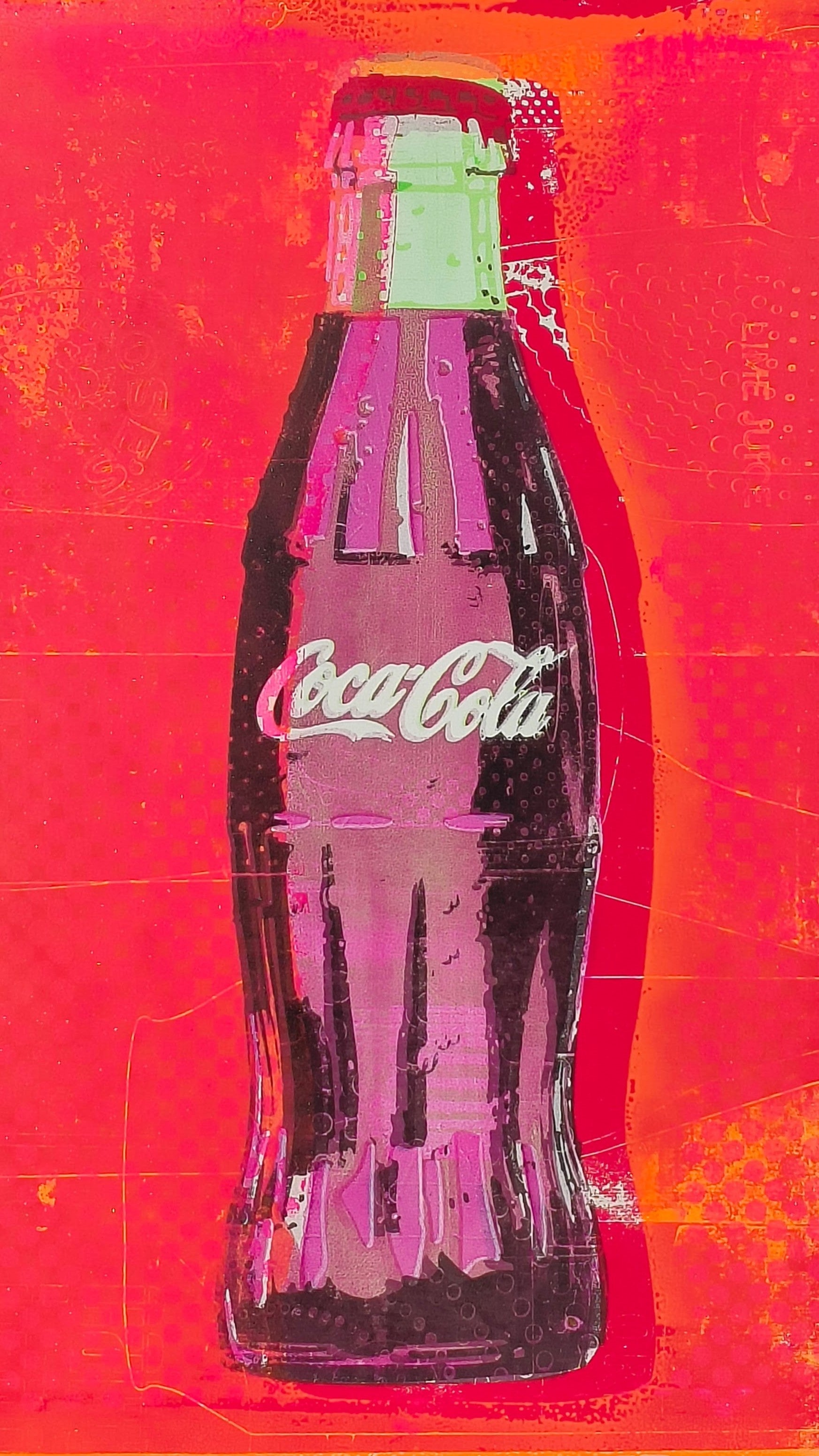 This A4 multi-layered screen prints pays homage to the iconic design of the Coca Cola bottle and brand. Each print is uniquely layered with texture and vibrant colours. Retro halftones pay homage to its vintage heritage, invoking a sense of nostalgia.