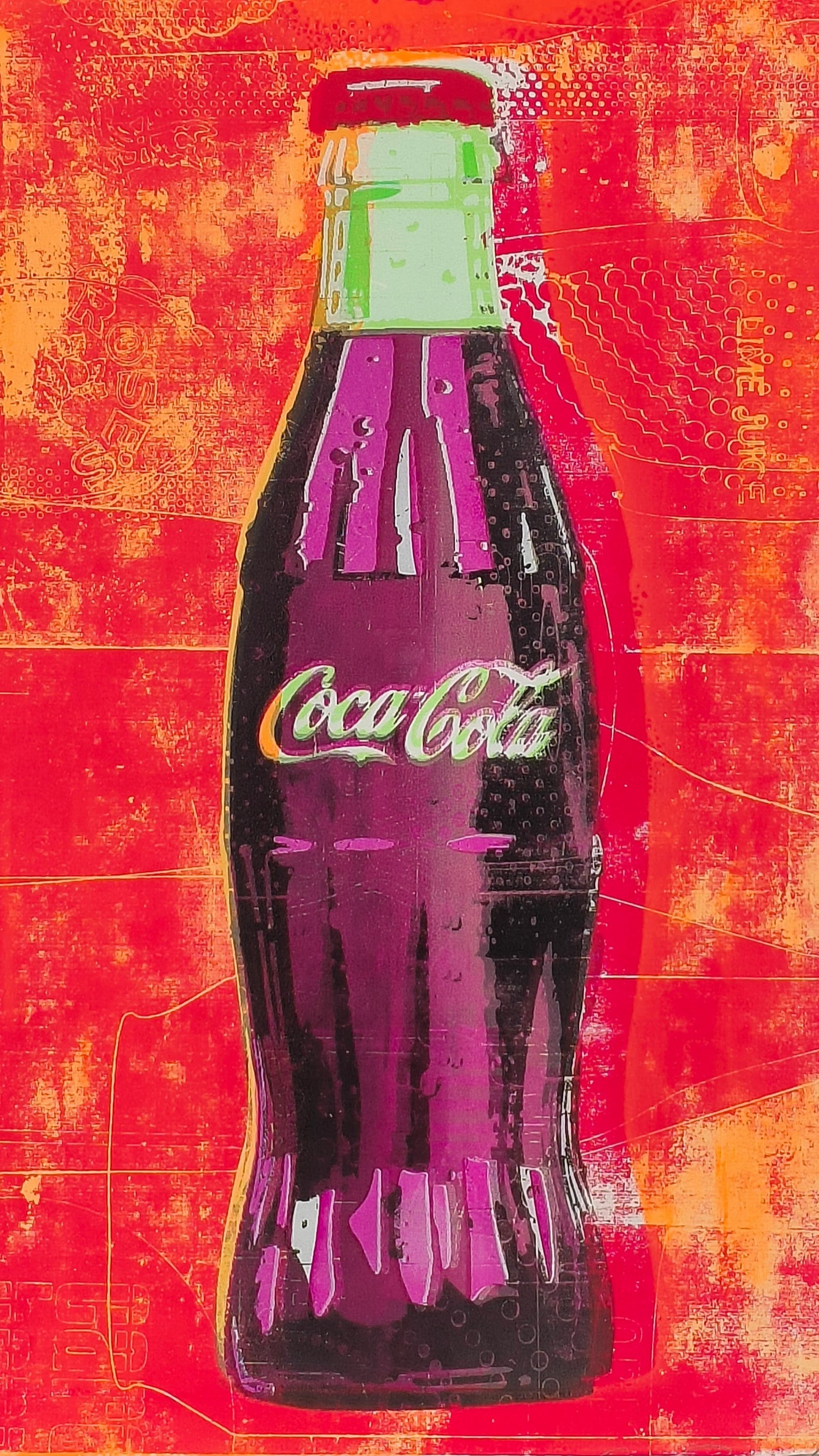 This A4 multi-layered screen prints pays homage to the iconic design of the Coca Cola bottle and brand. Each print is uniquely layered with texture and vibrant colours. Retro halftones pay homage to its vintage heritage, invoking a sense of nostalgia.