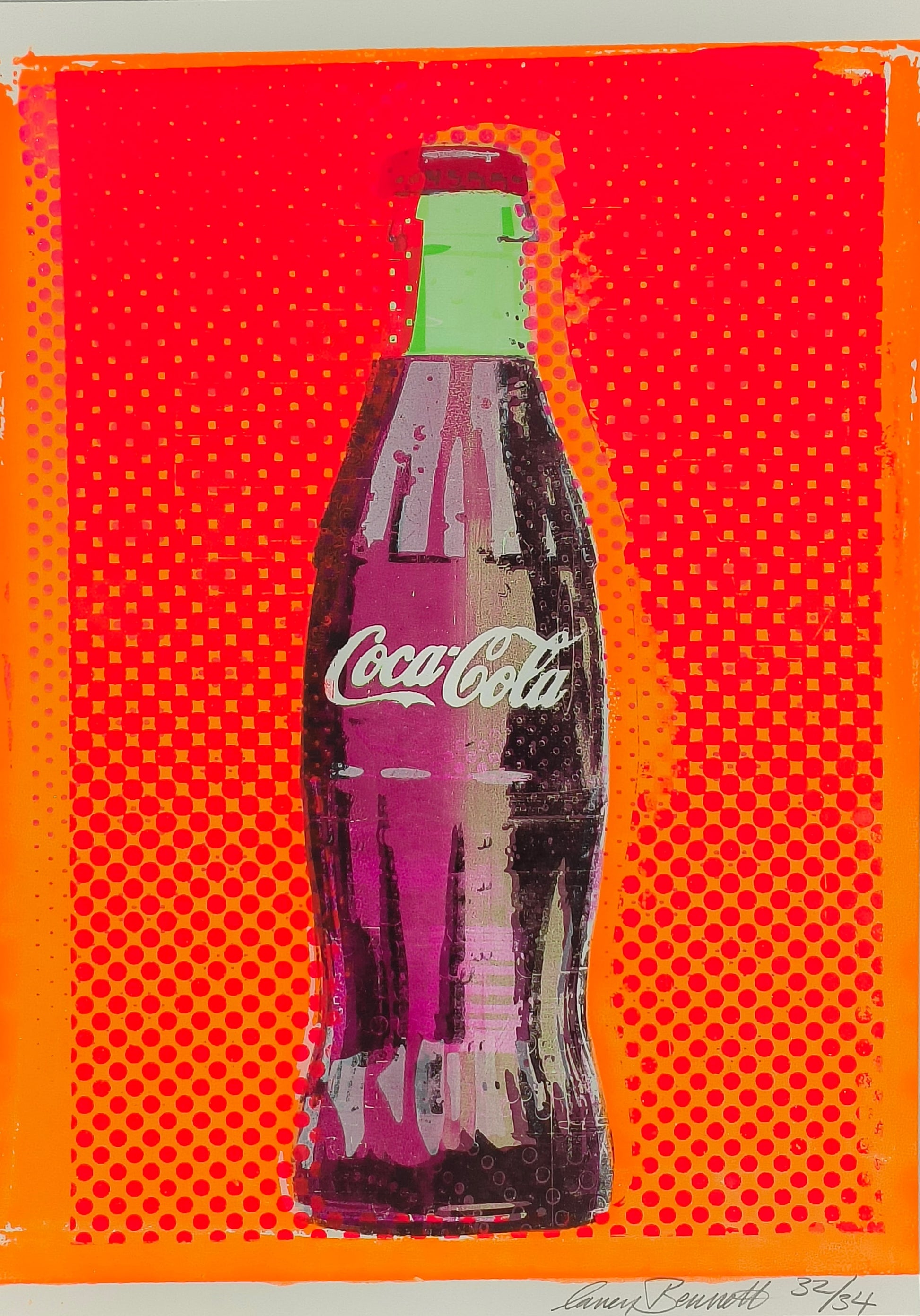 This A4 multi-layered screen prints pays homage to the iconic design of the Coca Cola bottle and brand. Each print is uniquely layered with texture and vibrant colours. Retro halftones pay homage to its vintage heritage, invoking a sense of nostalgia.