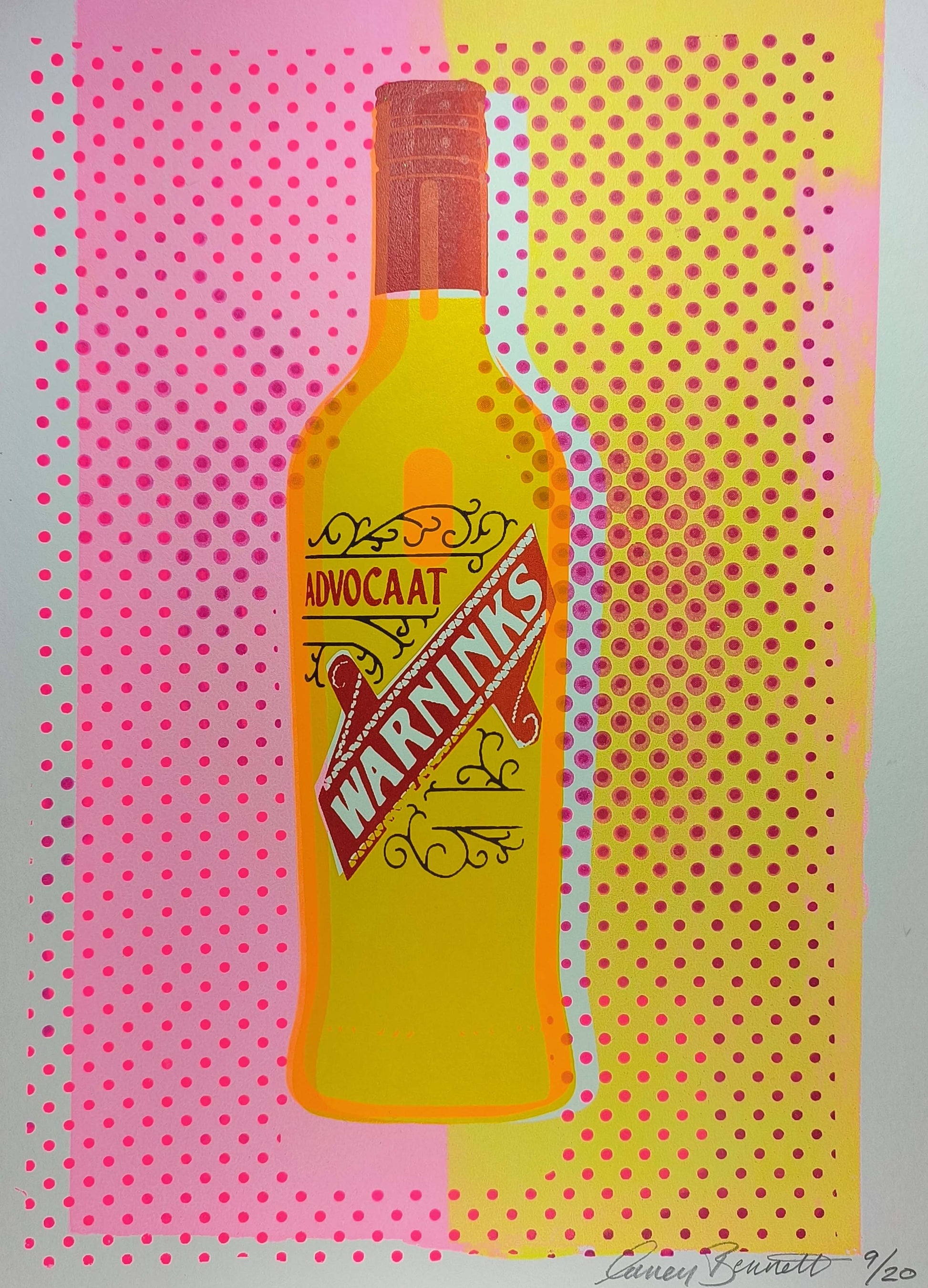 This A4 multi layered screen print evokes hazy, happy memories of my Grandad slipping me a secret (very small) 'snowball'. The prints intentionally alter to reflect the way that our memories of events change with time. Vibrant colours and distortion echo happy tinsel filled childhood Christmases. Each print is deliberately unique.