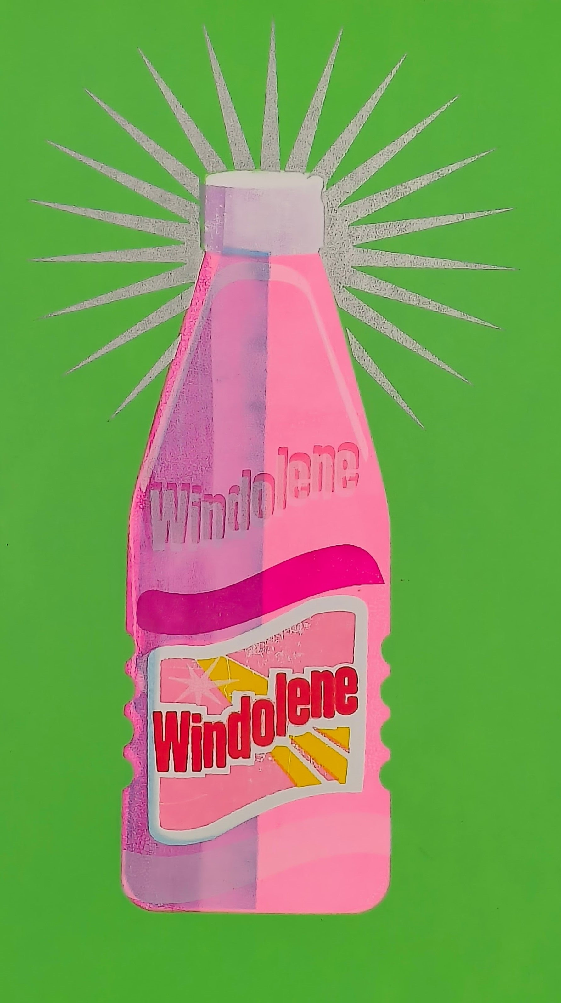 This series of A4 multi layered screens print evokes memories of childhood cleaning duties. Easter break = Spring cleaning, which meant getting the Windolene out. It seemed to take days to complete window cleaning ( I didn't live in a mansion!) It was almost impossible to rub off the chalky pink liquid. I am extremely pleased that todays formula seems a lot more 'user' friendly . The prints intentionally alter to reflect the way that our memories of events change, disintegrate and intensify with time. Each print is deliberately unique.