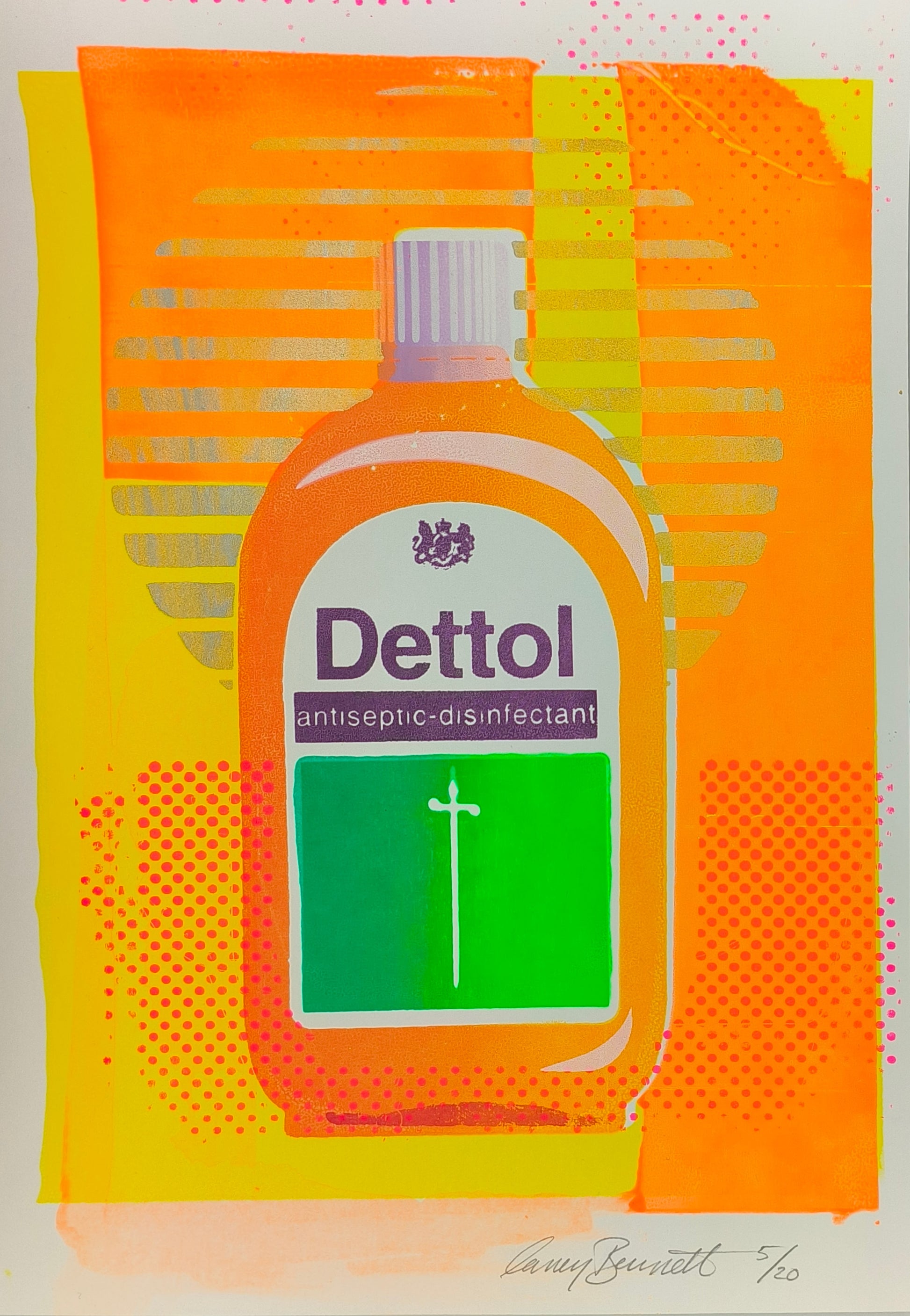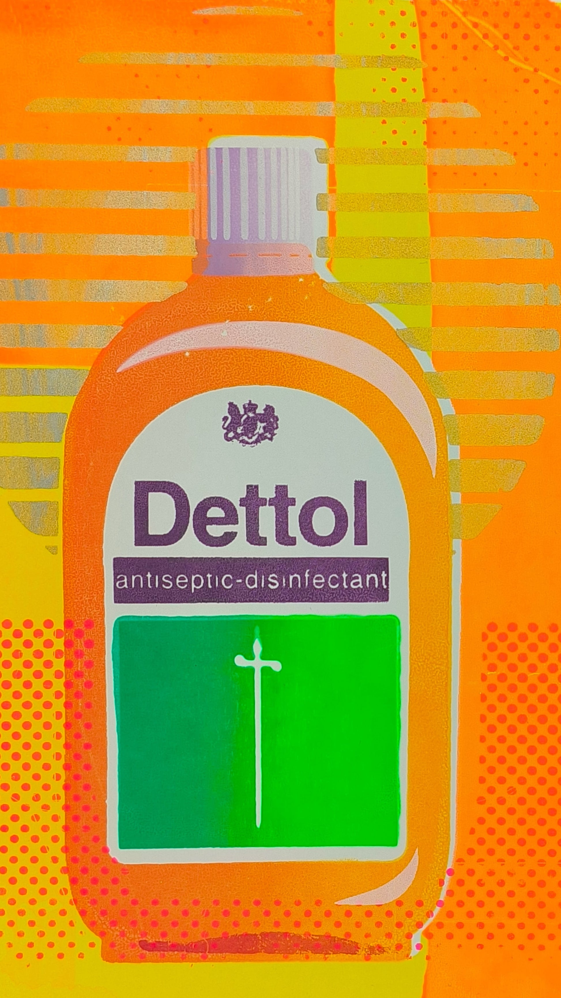 This series of one-off screen prints are based on the brand Dettol .They explore the nostalgia of cleanliness at home, and the underlying tension of accidents! Each print triggers a visual narrative, invoking memories and emotions tied to the scent of Dettol, which recalls feelings of hygiene, safety, and reassurance.
