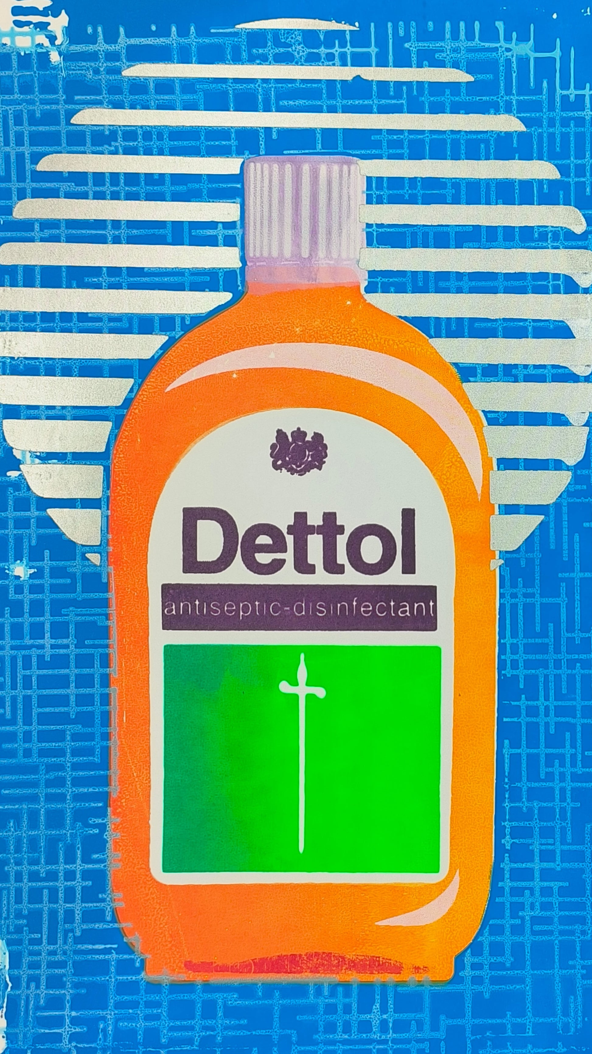 This series of one-off screen prints are based on the brand Dettol .They explore the nostalgia of cleanliness at home, and the underlying tension of accidents! Each print triggers a visual narrative, invoking memories and emotions tied to the scent of Dettol, which recalls feelings of hygiene, safety, and reassurance.