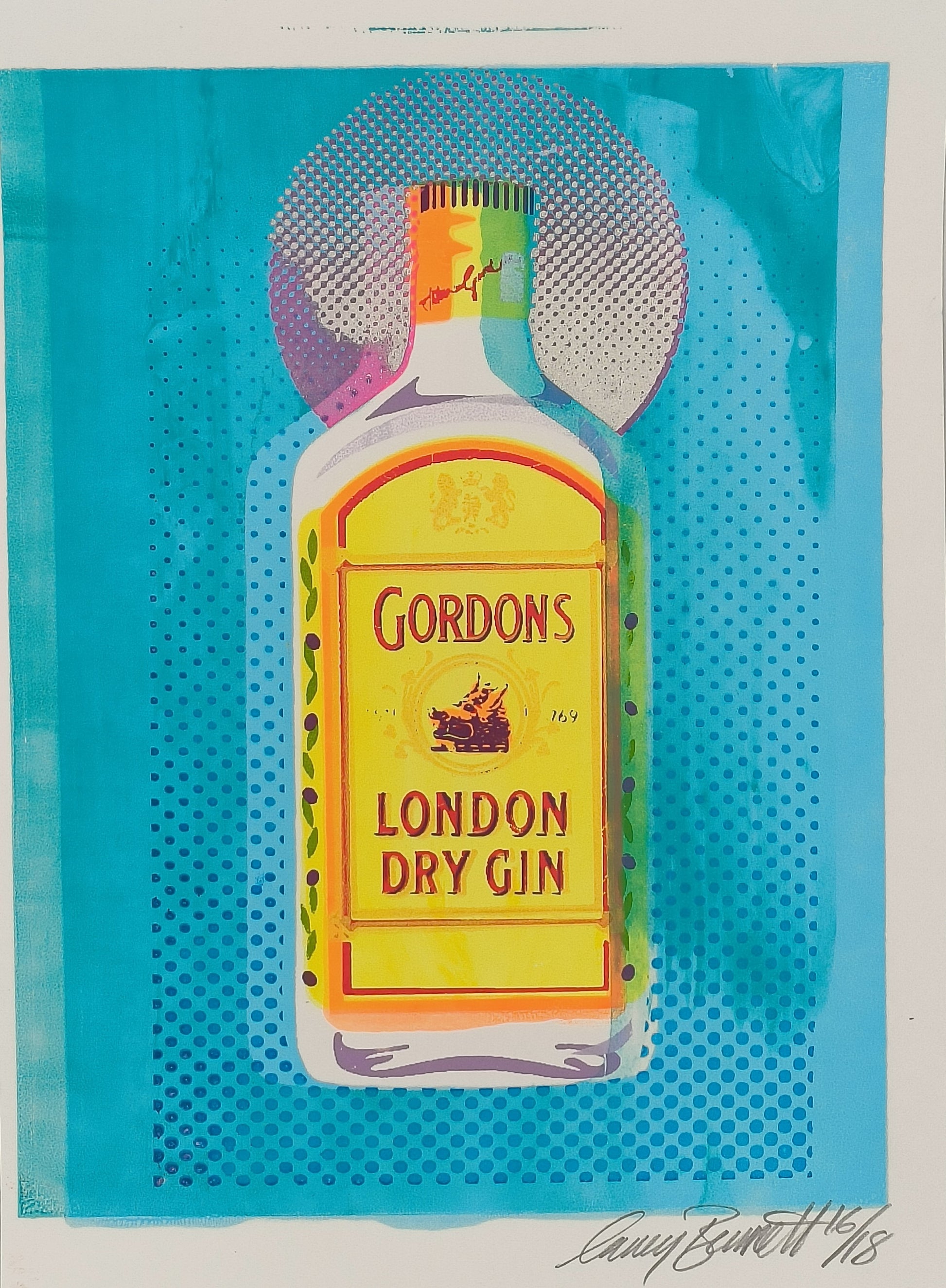 This series of A4 screen prints focuses on the vintage import bottle of Gordon's Gin. They recall the memory of the 'just one' before Sunday lunch. My Mum would have 'just one' whilst cooking Sunday lunch. My Dad would make a great performance out of pouring the drinks, using a measure, cutting up lemons accurately and retrieving ice cubes. It seemed to take him the same amount of time to make the drinks as it did for my Mum to cook the entire meal.
