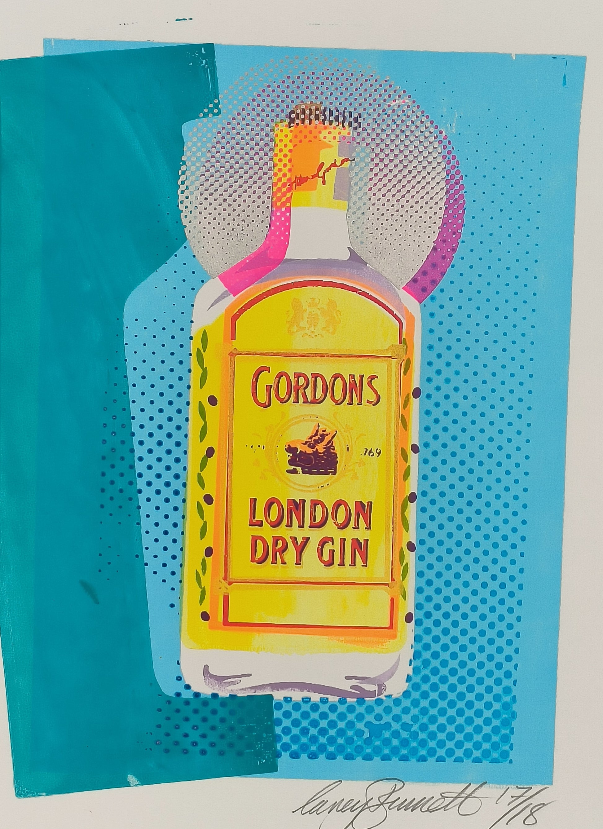 This series of A4 screen prints focuses on the vintage import bottle of Gordon's Gin. They recall the memory of the 'just one' before Sunday lunch. My Mum would have 'just one' whilst cooking Sunday lunch. My Dad would make a great performance out of pouring the drinks, using a measure, cutting up lemons accurately and retrieving ice cubes. It seemed to take him the same amount of time to make the drinks as it did for my Mum to cook the entire meal.