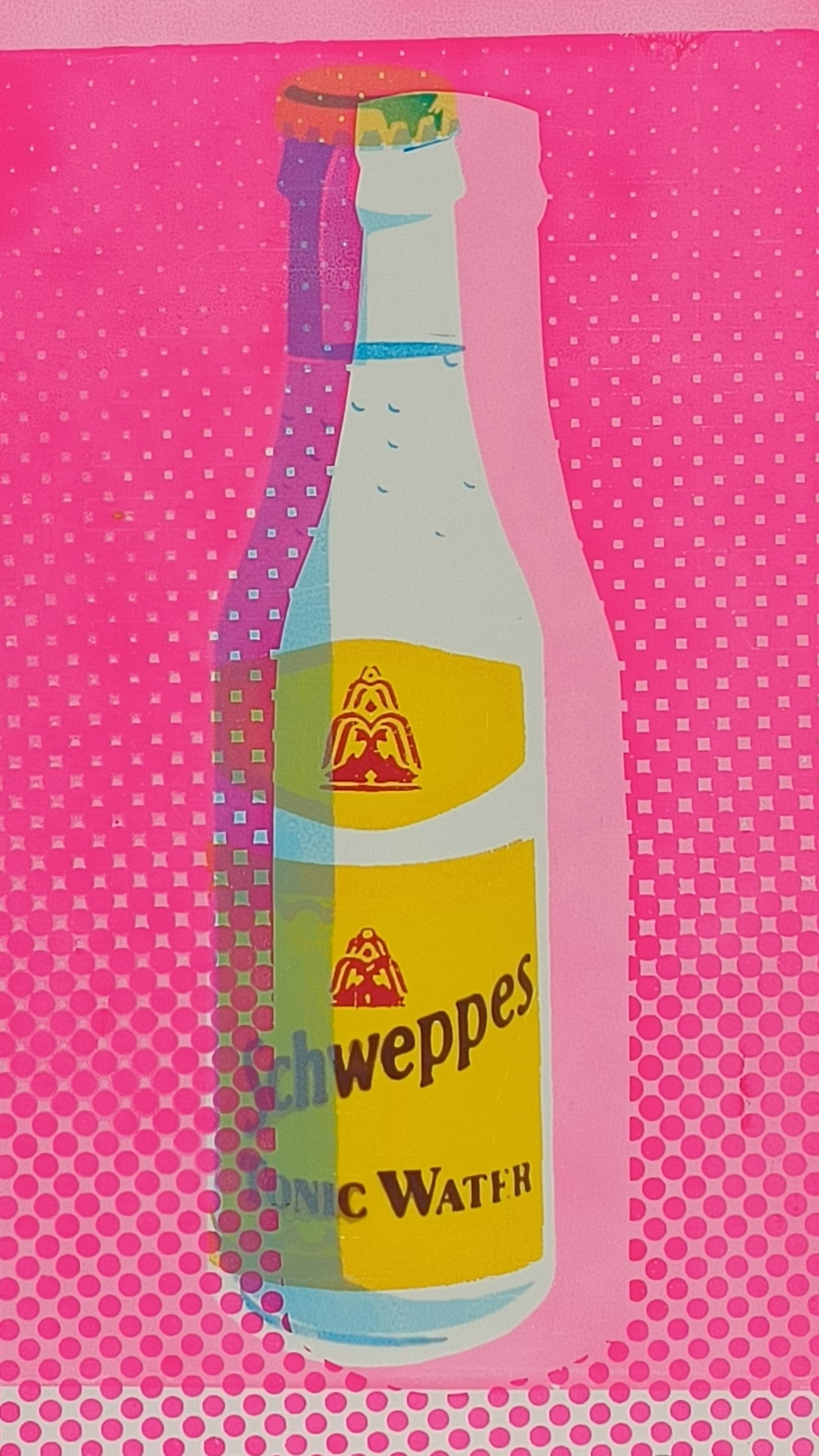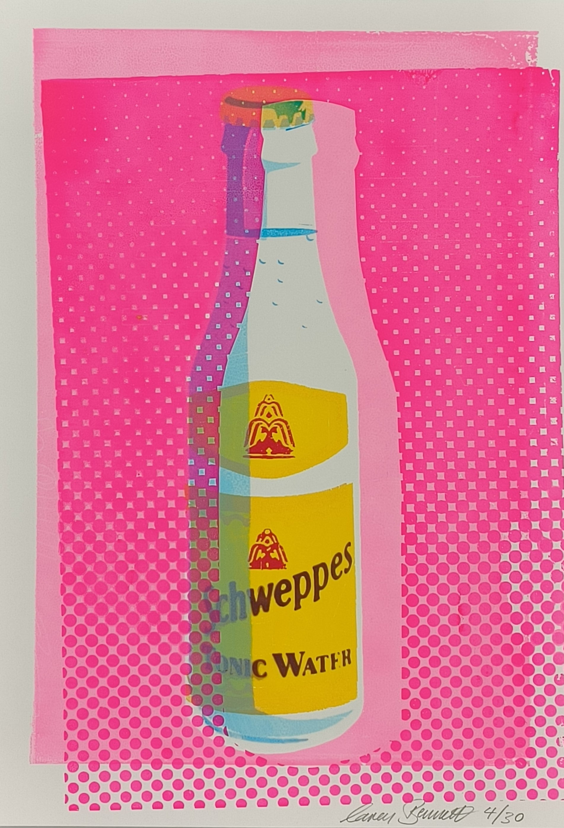 This series of multi-layered A4 screen-prints represent the quintessential mixer. There are currently all sorts of options for tonic water but back in the day ,this was it. It not only tasted very nice, but if there was an unexpected outbreak of Malaria in N.W. London, this had you covered. In addition, if you had the measures of gin my Dad poured, Malaria would not be foremost in your mind. Needless to say, this print works well alongside the Gordon's Gin print.
