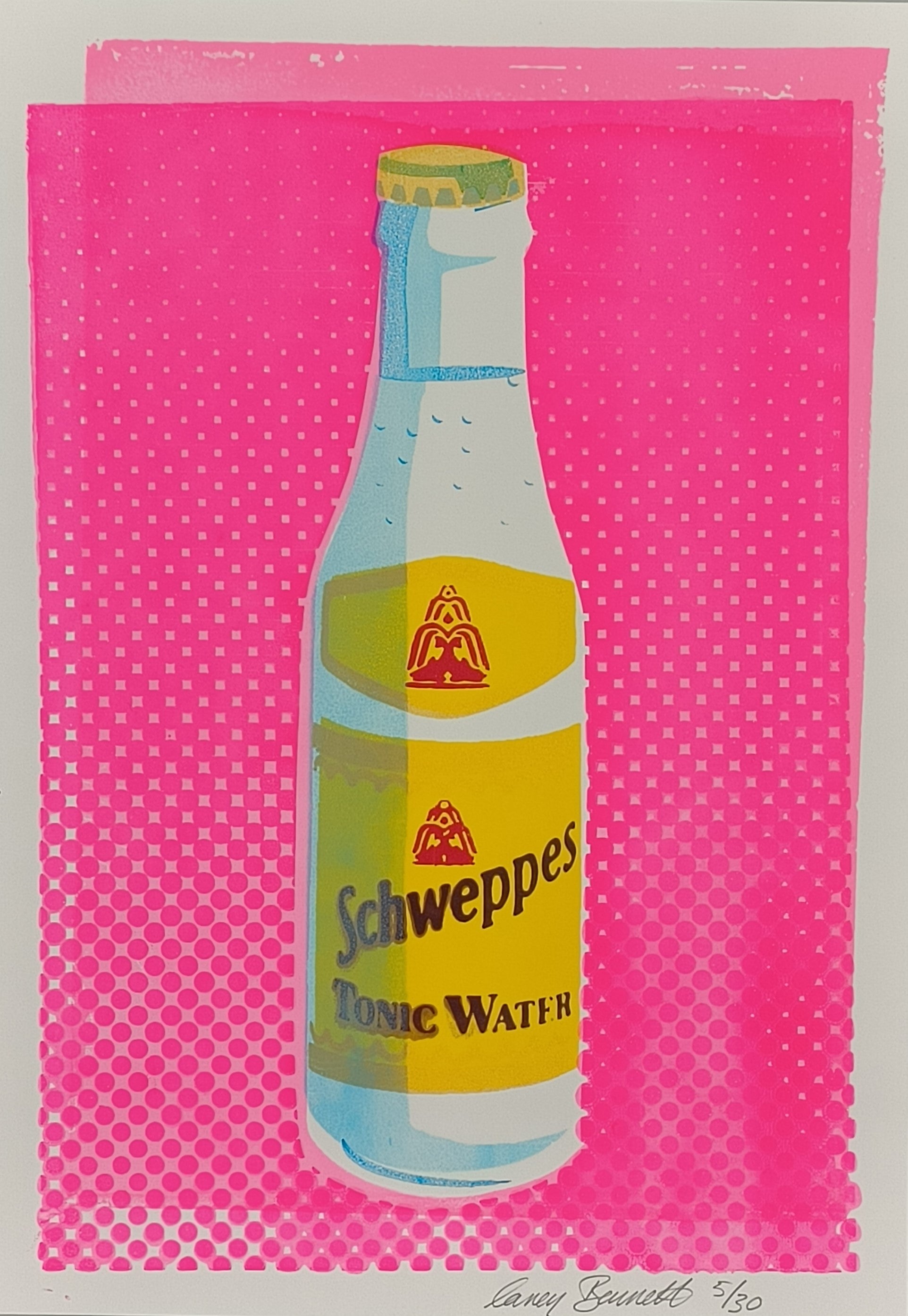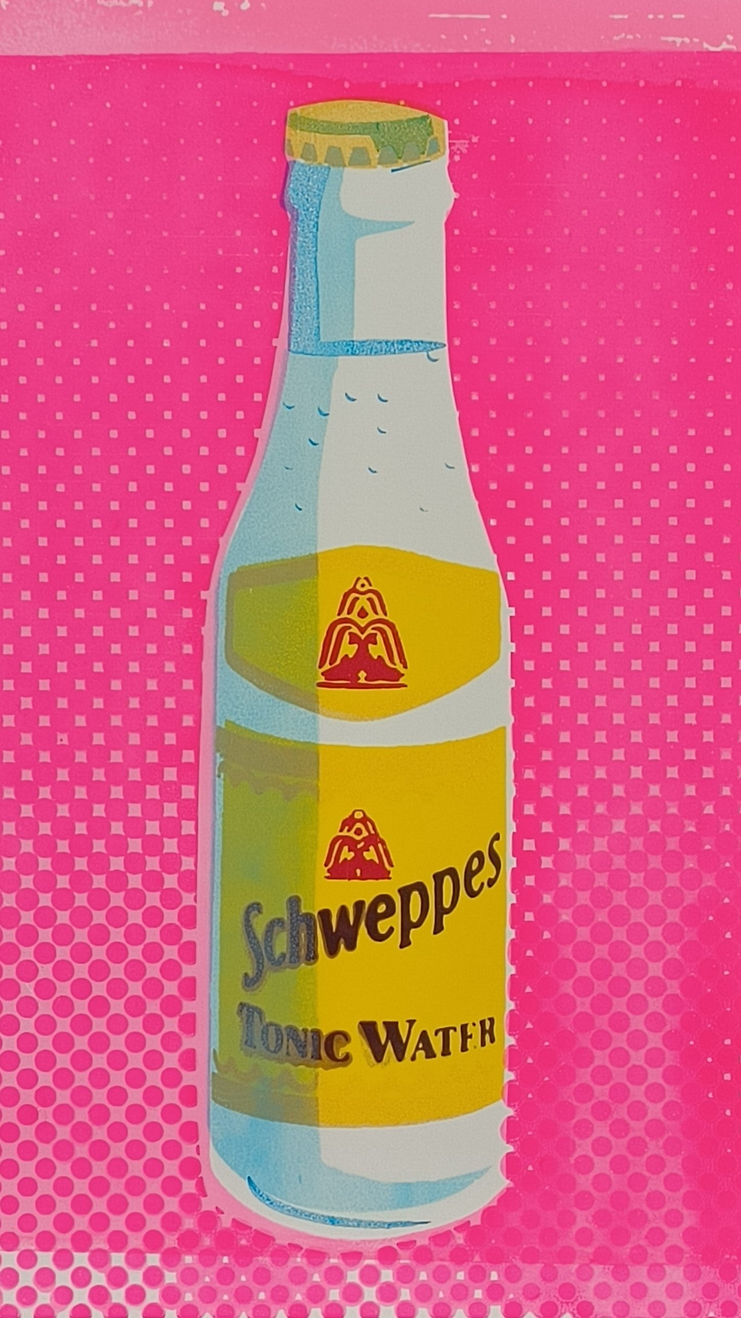 This series of multi-layered A4 screen-prints represent the quintessential mixer. There are currently all sorts of options for tonic water but back in the day ,this was it. It not only tasted very nice, but if there was an unexpected outbreak of Malaria in N.W. London, this had you covered. In addition, if you had the measures of gin my Dad poured, Malaria would not be foremost in your mind. Needless to say, this print works well alongside the Gordon's Gin print.