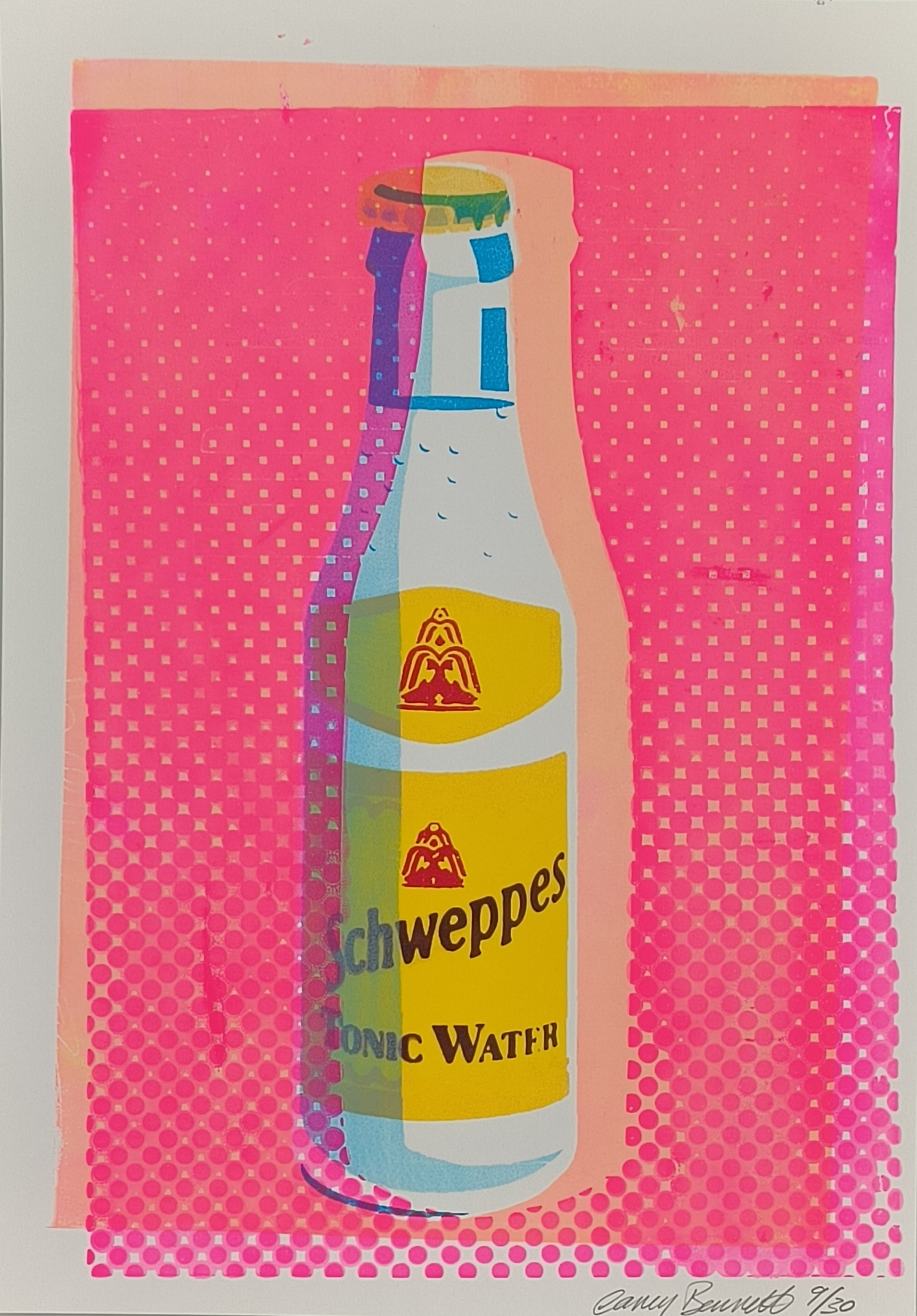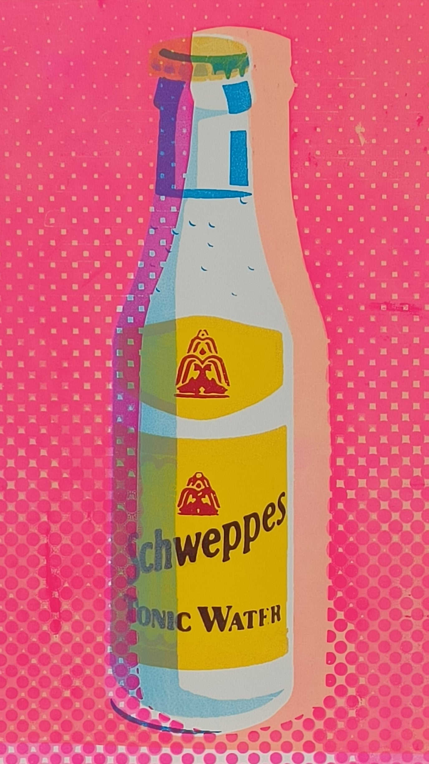 This series of multi-layered A4 screen-prints represent the quintessential mixer. There are currently all sorts of options for tonic water but back in the day ,this was it. It not only tasted very nice, but if there was an unexpected outbreak of Malaria in N.W. London, this had you covered. In addition, if you had the measures of gin my Dad poured, Malaria would not be foremost in your mind. Needless to say, this print works well alongside the Gordon's Gin print.