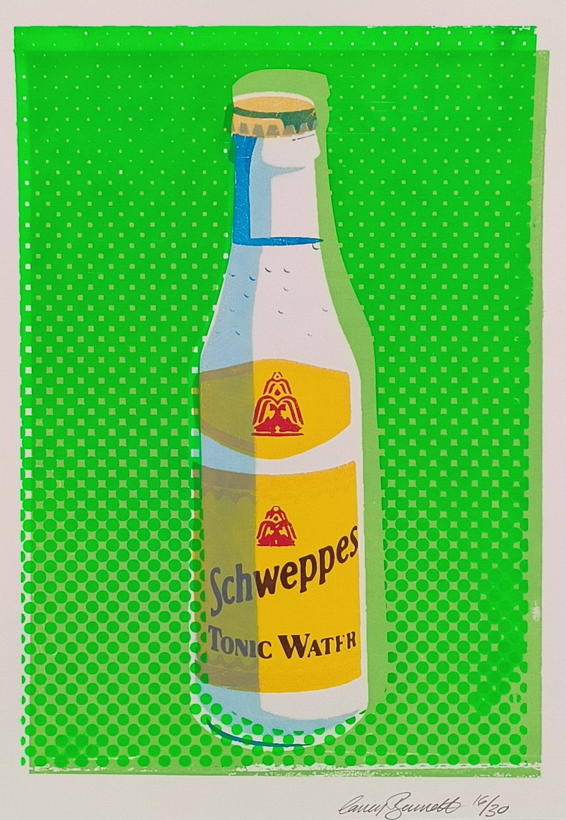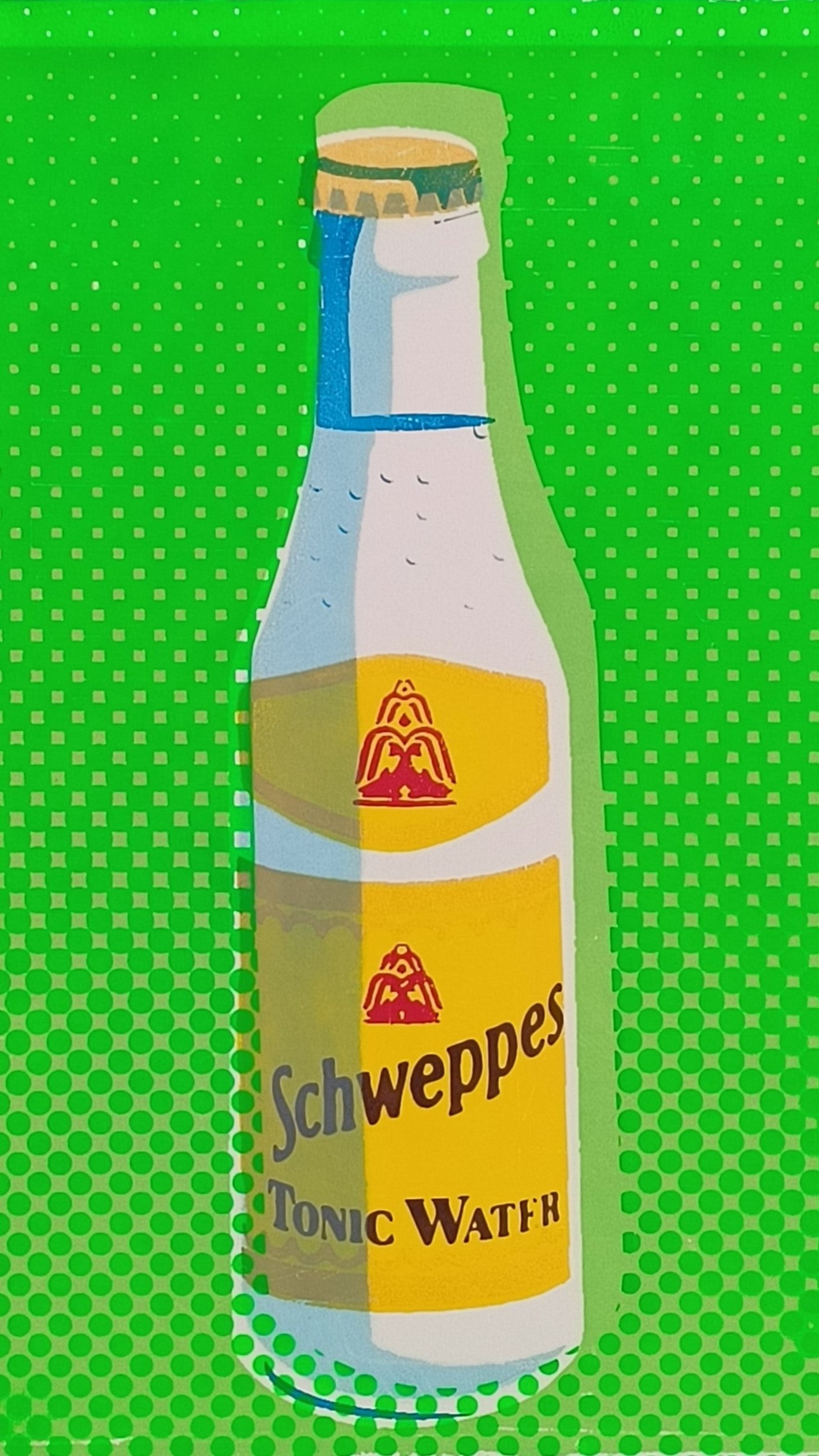 This series of multi-layered A4 screen-prints represent the quintessential mixer. There are currently all sorts of options for tonic water but back in the day ,this was it. It not only tasted very nice, but if there was an unexpected outbreak of Malaria in N.W. London, this had you covered. In addition, if you had the measures of gin my Dad poured, Malaria would not be foremost in your mind. Needless to say, this print works well alongside the Gordon's Gin print.