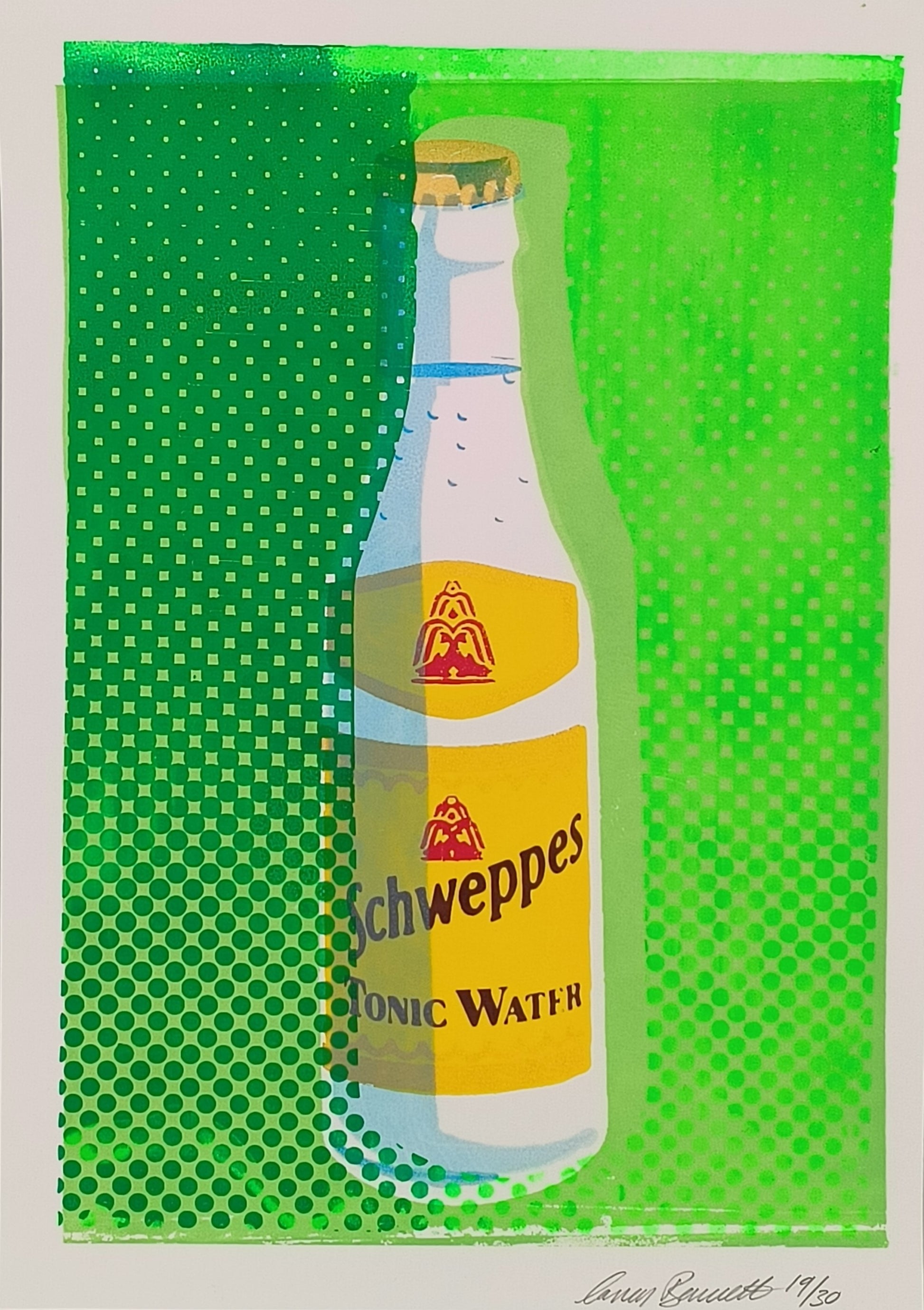This series of multi-layered A4 screen-prints represent the quintessential mixer. There are currently all sorts of options for tonic water but back in the day ,this was it. It not only tasted very nice, but if there was an unexpected outbreak of Malaria in N.W. London, this had you covered. In addition, if you had the measures of gin my Dad poured, Malaria would not be foremost in your mind. Needless to say, this print works well alongside the Gordon's Gin print.