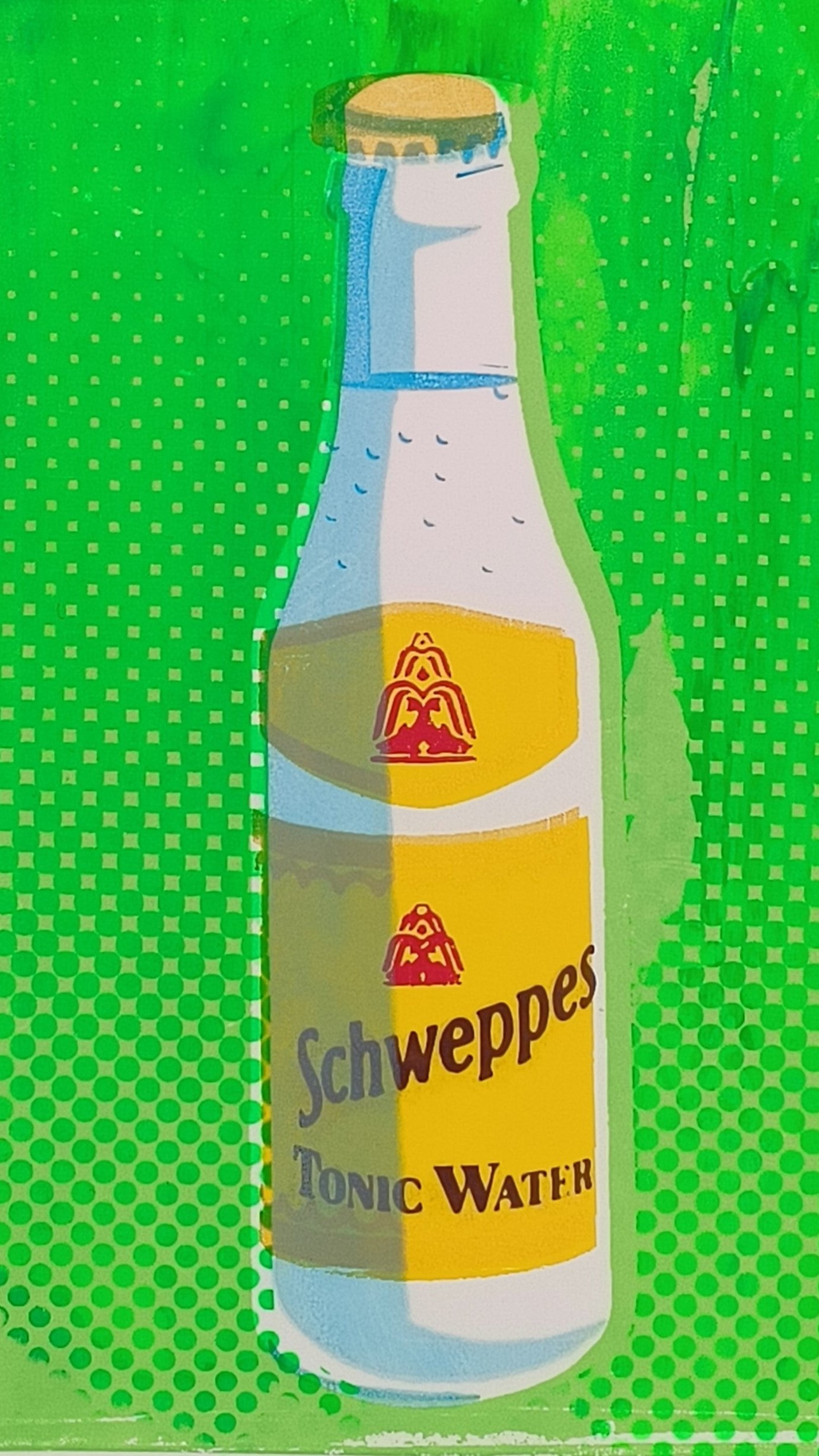 This series of multi-layered A4 screen-prints represent the quintessential mixer. There are currently all sorts of options for tonic water but back in the day ,this was it. It not only tasted very nice, but if there was an unexpected outbreak of Malaria in N.W. London, this had you covered. In addition, if you had the measures of gin my Dad poured, Malaria would not be foremost in your mind. Needless to say, this print works well alongside the Gordon's Gin print.