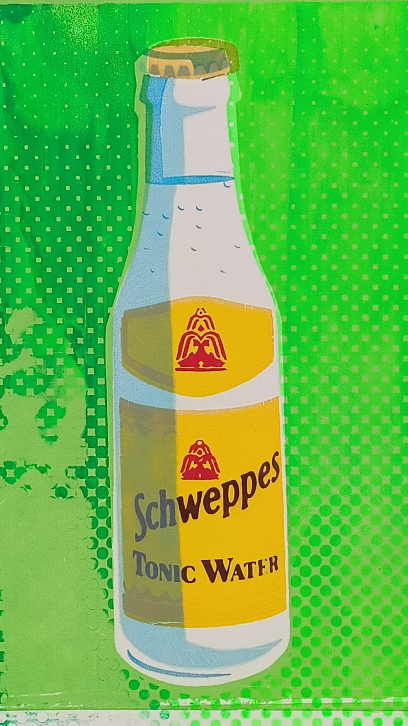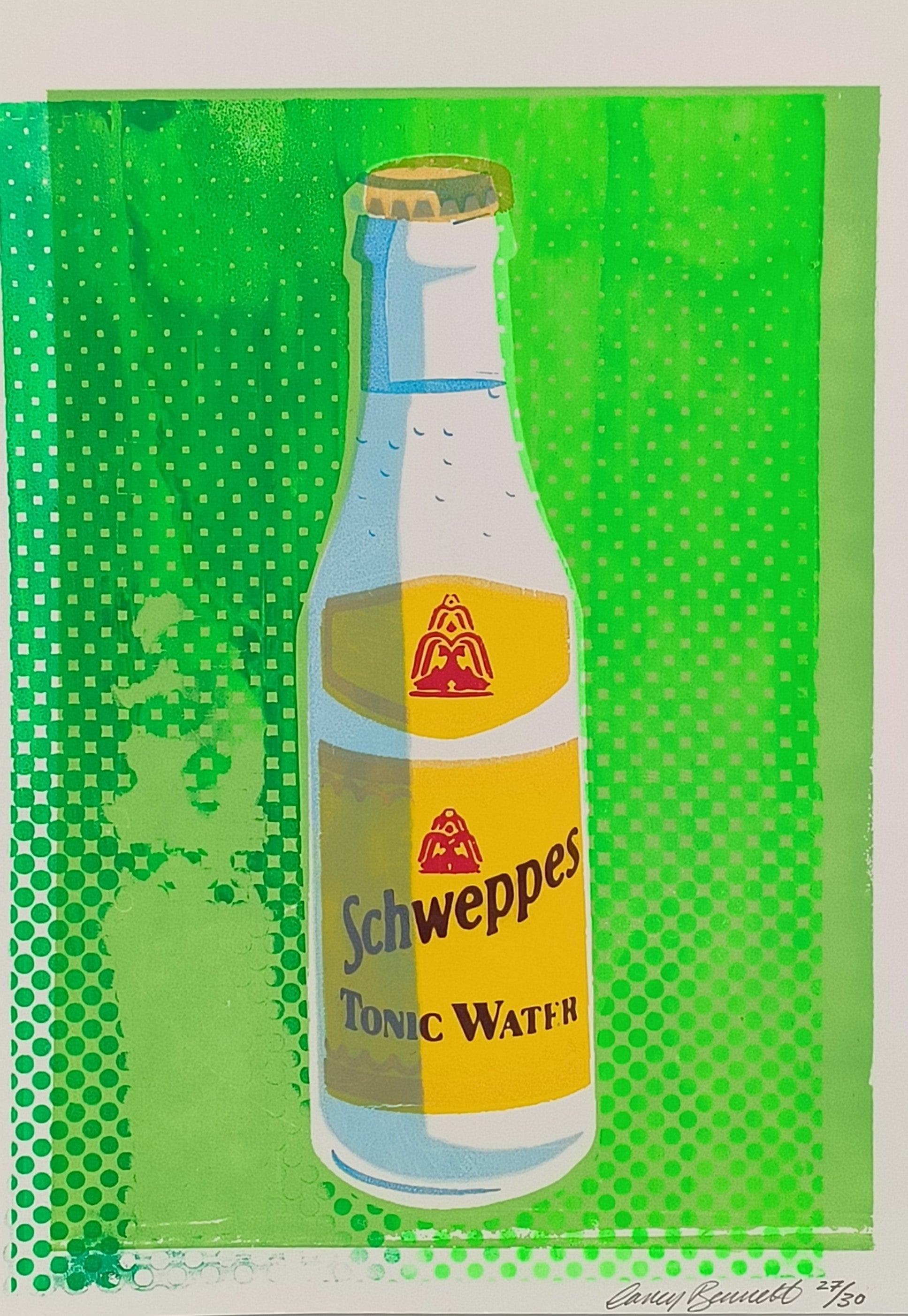 This series of multi-layered A4 screen-prints represent the quintessential mixer. There are currently all sorts of options for tonic water but back in the day ,this was it. It not only tasted very nice, but if there was an unexpected outbreak of Malaria in N.W. London, this had you covered. In addition, if you had the measures of gin my Dad poured, Malaria would not be foremost in your mind. Needless to say, this print works well alongside the Gordon's Gin print.