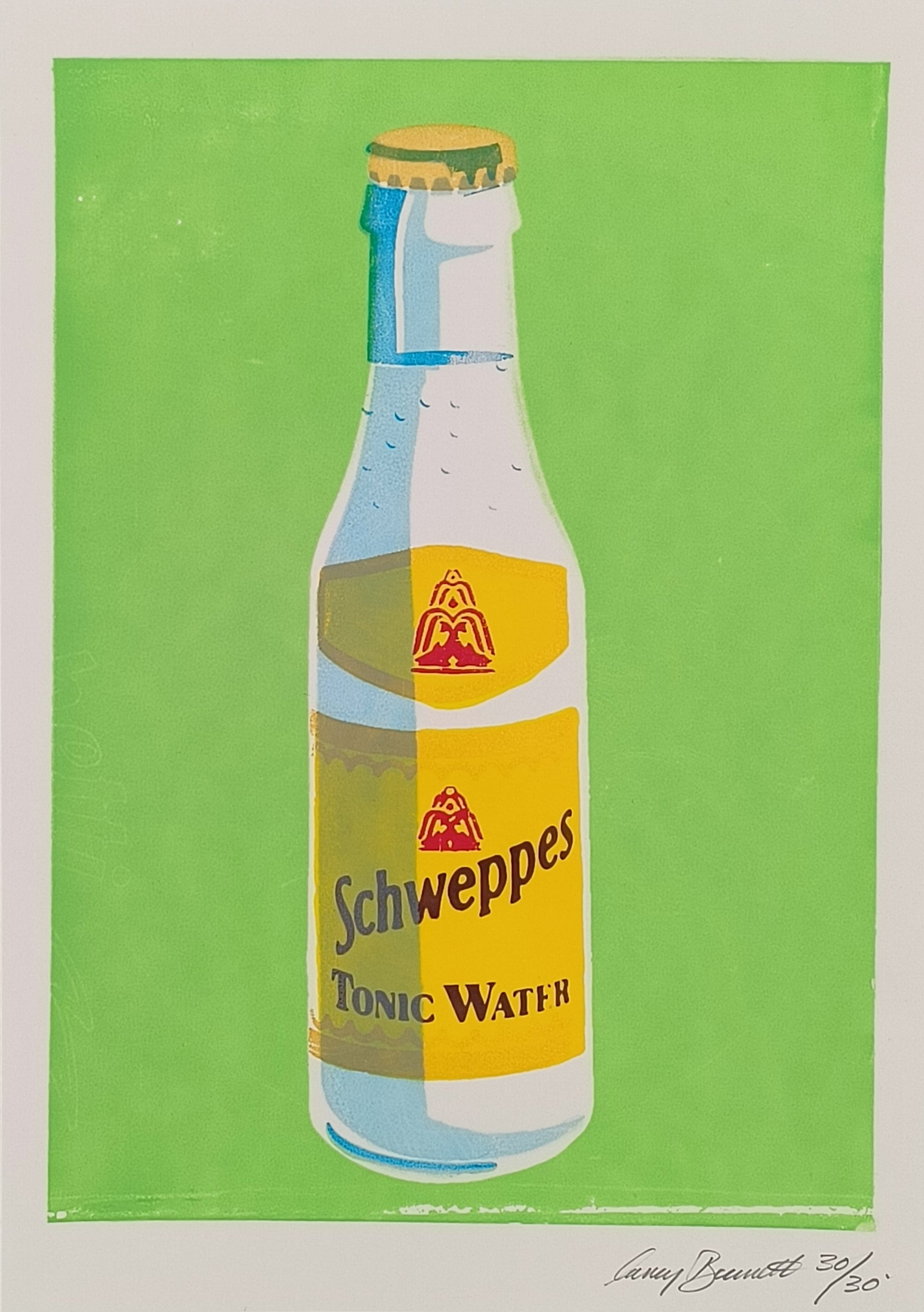 This series of multi-layered A4 screen-prints represent the quintessential mixer. There are currently all sorts of options for tonic water but back in the day ,this was it. It not only tasted very nice, but if there was an unexpected outbreak of Malaria in N.W. London, this had you covered. In addition, if you had the measures of gin my Dad poured, Malaria would not be foremost in your mind. Needless to say, this print works well alongside the Gordon's Gin print.