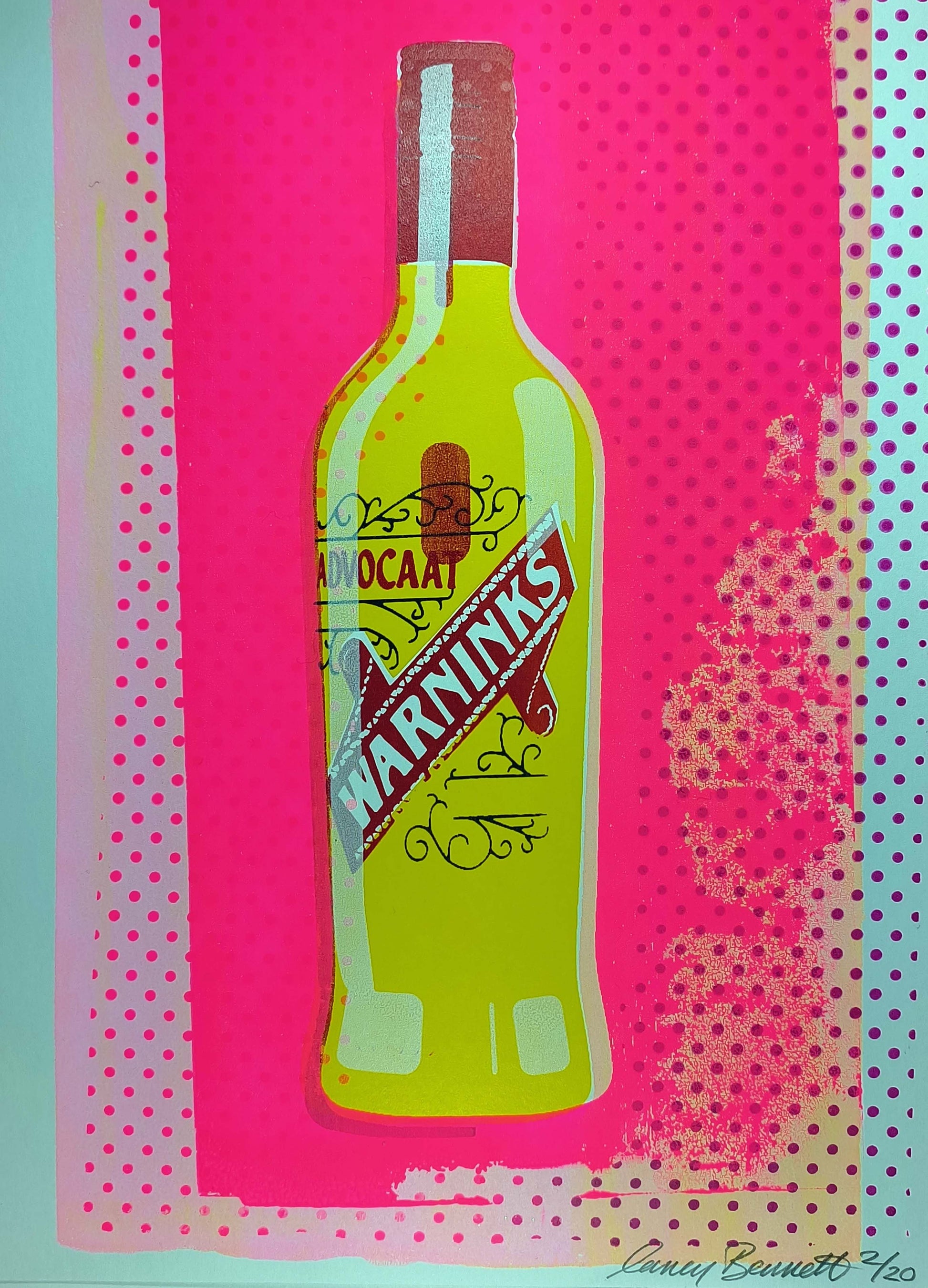 This A4 multi layered screen print evokes hazy, happy memories of my Grandad slipping me a secret (very small) 'snowball'. The prints intentionally alter to reflect the way that our memories of events change with time. Vibrant colours and distortion echo happy tinsel filled childhood Christmases. Each print is deliberately unique.