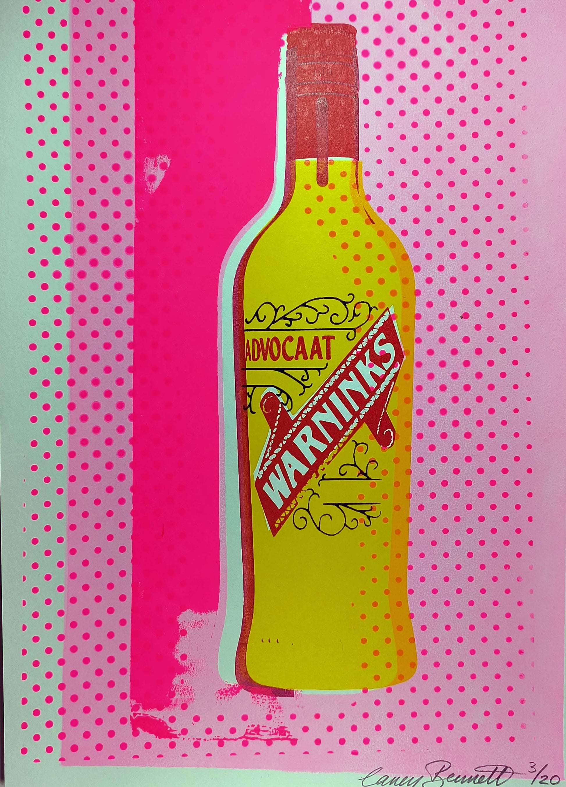 This A4 multi layered screen print evokes hazy, happy memories of my Grandad slipping me a secret (very small) 'snowball'. The prints intentionally alter to reflect the way that our memories of events change with time. Vibrant colours and distortion echo happy tinsel filled childhood Christmases. Each print is deliberately unique.