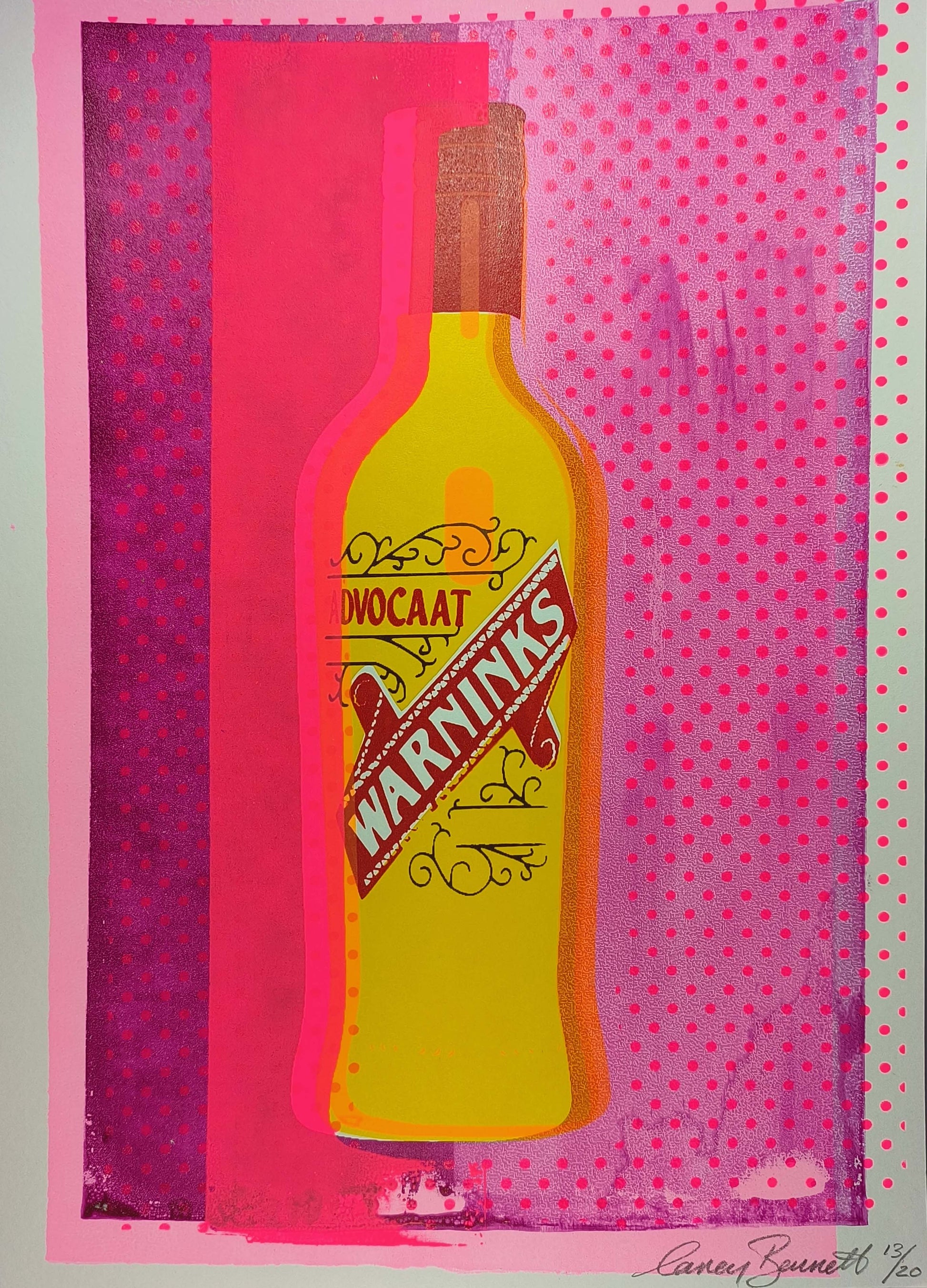 This A4 multi layered screen print evokes hazy, happy memories of my Grandad slipping me a secret (very small) 'snowball'. The prints intentionally alter to reflect the way that our memories of events change with time. Vibrant colours and distortion echo happy tinsel filled childhood Christmases. Each print is deliberately unique.