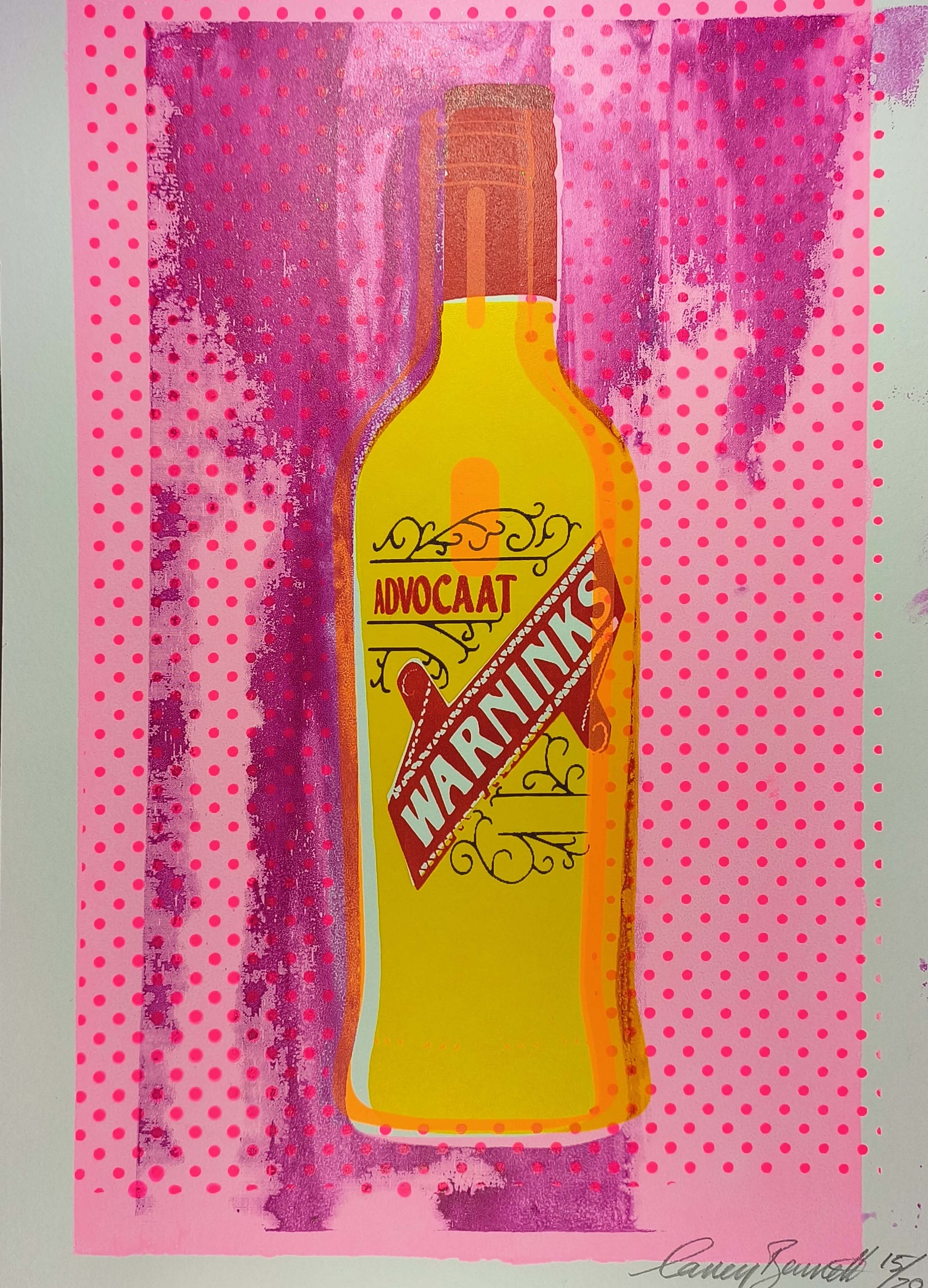 This A4 multi layered screen print evokes hazy, happy memories of my Grandad slipping me a secret (very small) 'snowball'. The prints intentionally alter to reflect the way that our memories of events change with time. Vibrant colours and distortion echo happy tinsel filled childhood Christmases. Each print is deliberately unique.