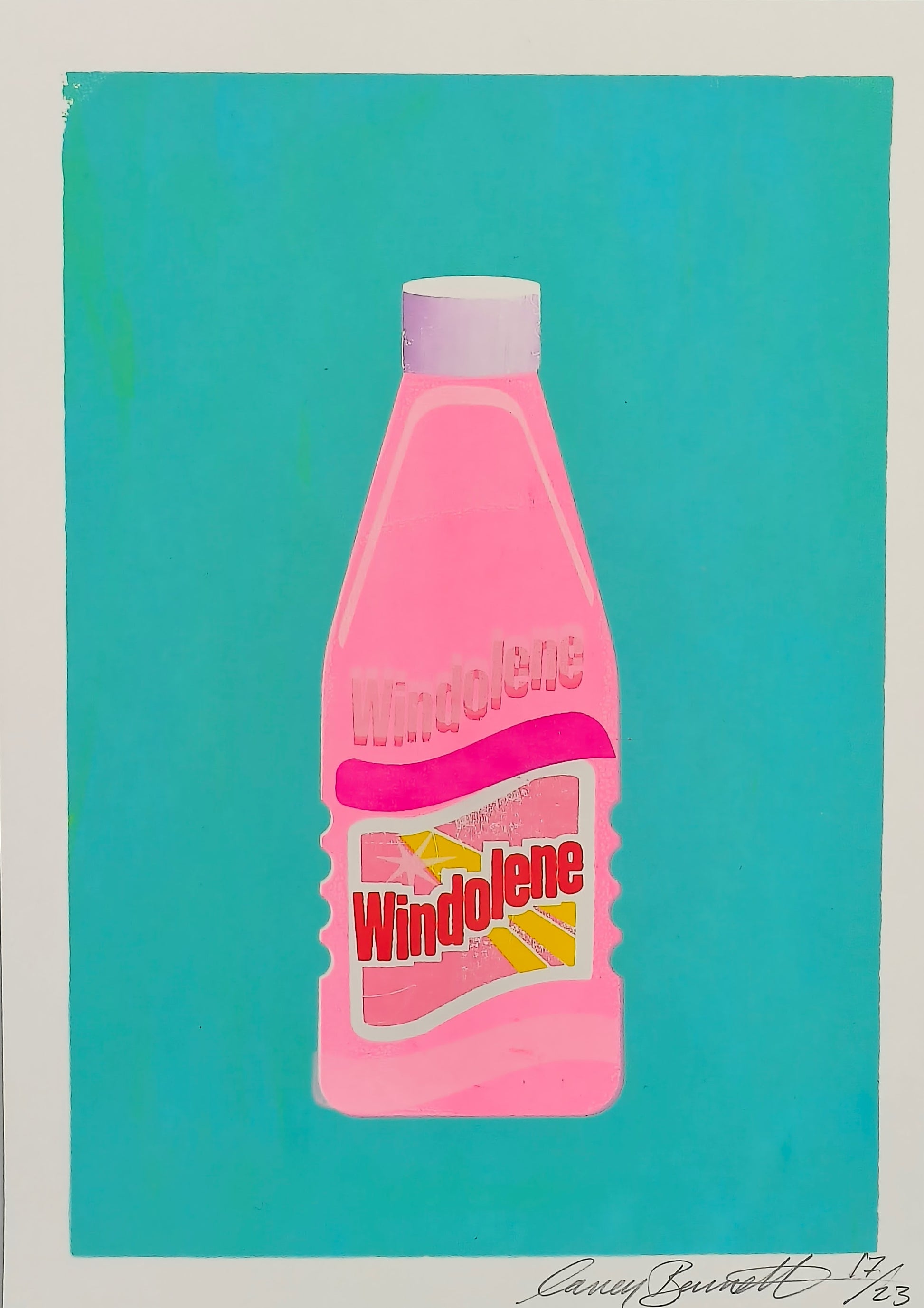 This series of A4 multi layered screens print evokes memories of childhood cleaning duties. Easter break = Spring cleaning, which meant getting the Windolene out. It seemed to take days to complete window cleaning ( I didn't live in a mansion!) It was almost impossible to rub off the chalky pink liquid. I am extremely pleased that todays formula seems a lot more 'user' friendly . The prints intentionally alter to reflect the way that our memories of events change, disintegrate and intensify with time. Each print is deliberately unique.
